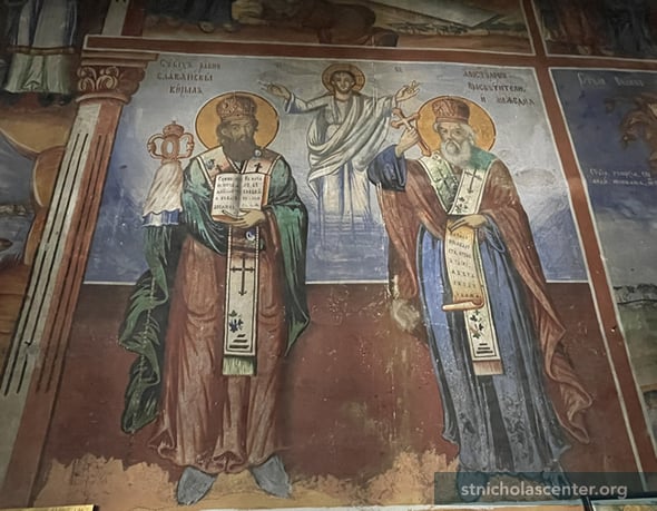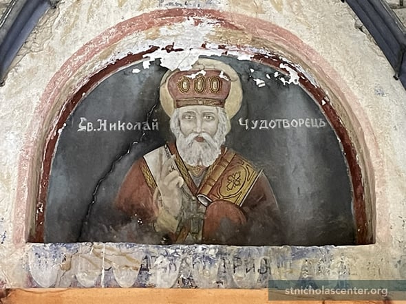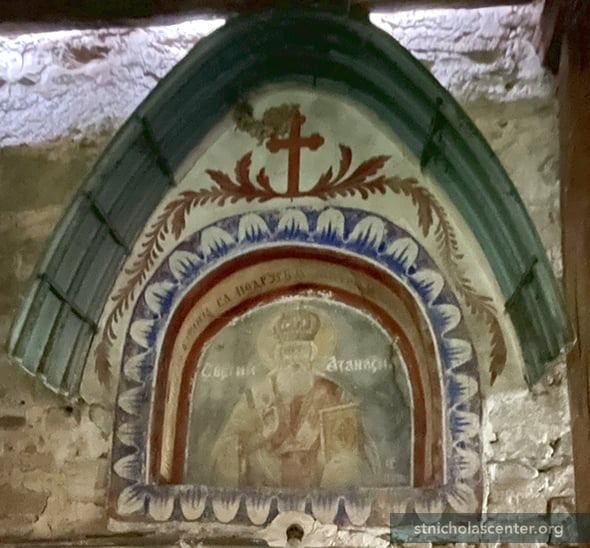 The date of the church is unknown; it was restored in 1863. Materials were removed for World War I trench warfare. The severe damage was restored in 1923. The frescoes were restored in 1927.