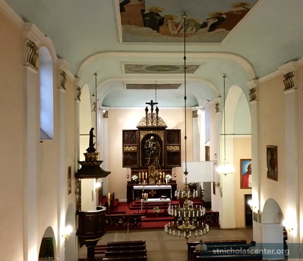 The church dates from 1755; it was expanded in 1948 to 1950. The tower was added in 1981.Ksiąaz Wielkopolski Poland