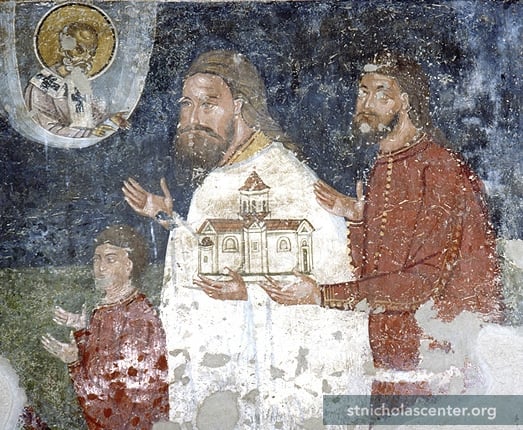 The church was built in the late 1300s and restored in 1830. Frescoes feature the life of St. Nicholas.
