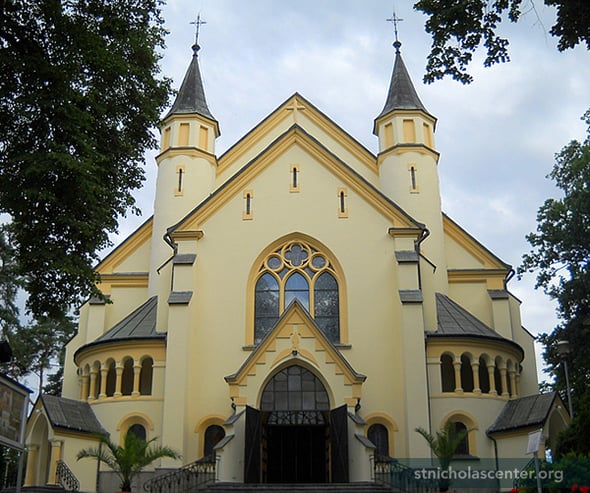 This church was built in 1911-1913. The parish was established before 1384 and the first church burned by Tatars in 1624. A new wooden church was built in 1635 and demolished after nearly 300 years.