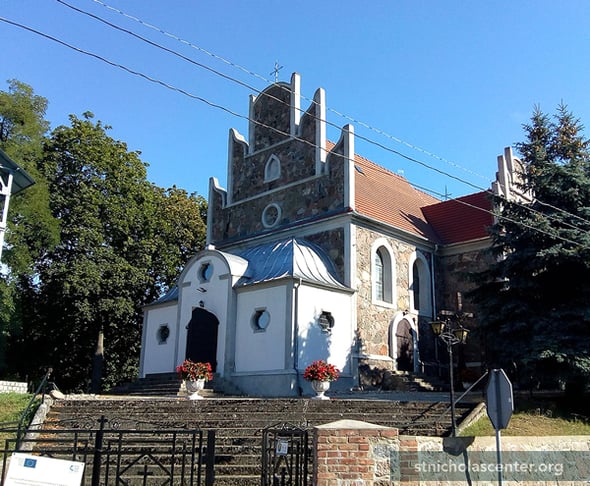 Built around 1780, the church was completely rebuilt in the 1840s. The church is brick covered with fieldstone. The interior furnishings were renovated in the 2010s.Lewice Poland