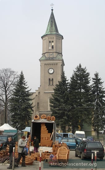 The neo-Romanesque church was built in 1873 and consecrated in 1888. The tower is 52-meters high.