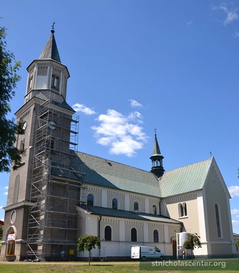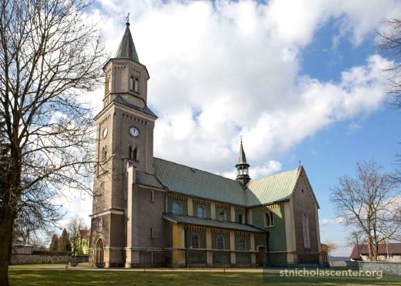 The neo-Romanesque church was built in 1873 and consecrated in 1888. The tower is 52-meters high.Liszki Poland