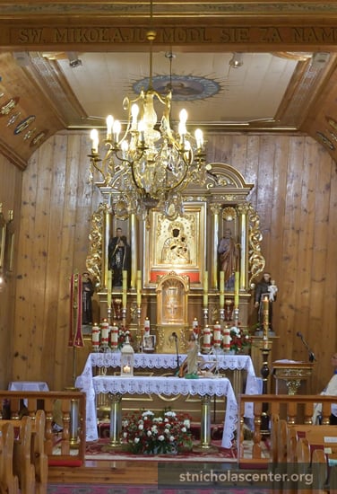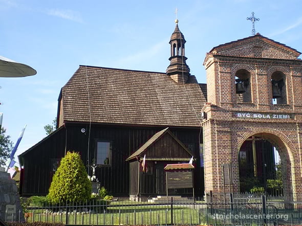 Kosciol sw. Mikolaja Chroscin Poland Roman Catholic The parish was established in the 13th century by Cistercians from Olobok. The building dates from 1734 and 1919. It is a registered historic monument.