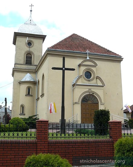 The church was built in 1891, replacing two earlier wooden churches. It was established as a parish in 1925 and consecrated in 1965. There are two chapels adjacent to the church: a funeral chapel and a Marian chapel.