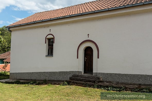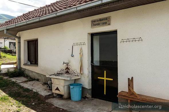 The church with the village cemetery is in the center of the village. It was completed in 1999, with an earlier date, 1990, along the side.