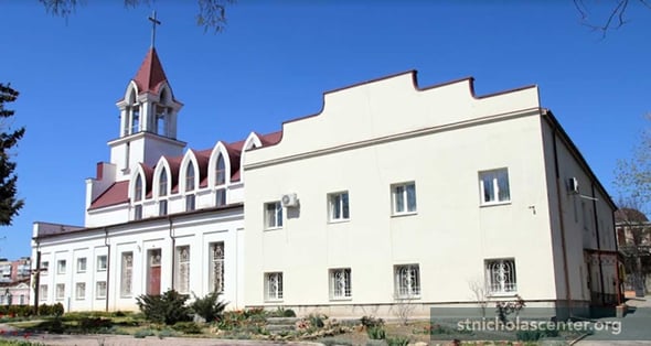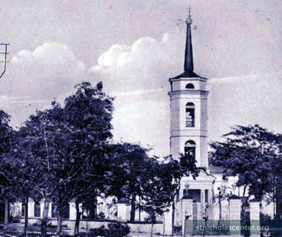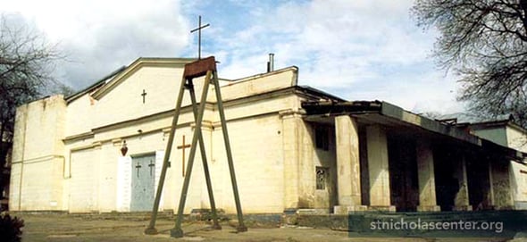 A brick church was built in the 1820s, consecrated to Ss. Pius and Nicholas. Rebuilt with an added tower, it was reconsecrated as St. Anthony, the cathedral of the newly formed eparchy. Rebuilt and reconsecrated again in 1887 under St. Nicholas. Closed under the Soviets in 1931, it was rebuilt and housed the State Film Distribution with workshops for repairing film equipment and became a children's cinema in 1957. In 1989 Roman Catholics began celebrating Masses in their apartments and later in the cinema, that had been the former church. Part of the building was given to them in 1994 and all of it leased in 2000. Reconstruction of the church began in 2005, supported by Catholics around the world.