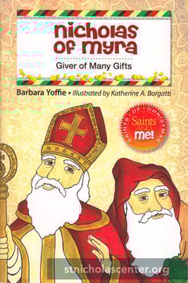 Attractive small book tells two Nicholas stories (the dowry money and famine) and nicely relates St. Nicholas to Santa Claus, ending, "Most of all, Saint Nicholas wants us to thank God for the gift of the Christ Child, Jesus, who taught us how to love one another; and whose birth makes Christmas a Holy Day for all of us."Purchase from amazon.com, amazon.co.uk, amazon.ca