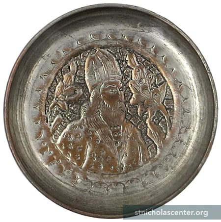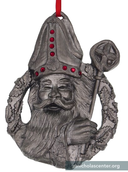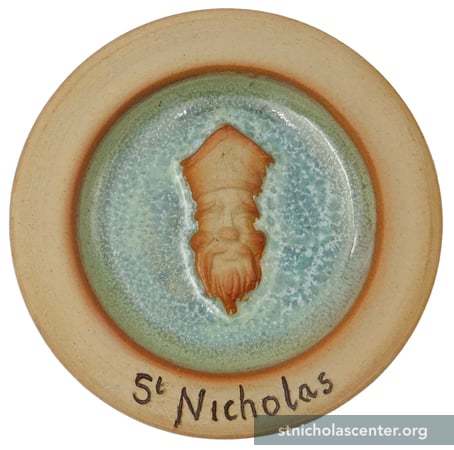 Stoneware plaque made with St. Nicholas motif from modern commercial Belgian acrylic mold