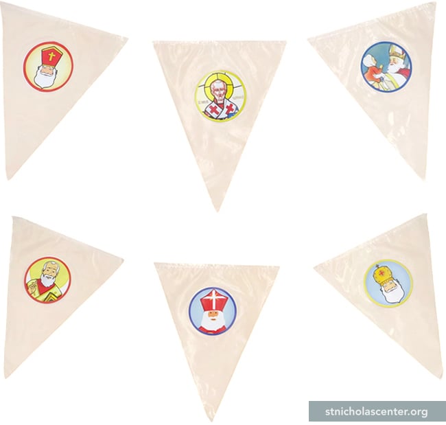 7 plastic pennants, 8 1/4 × 11 1/2 inches each