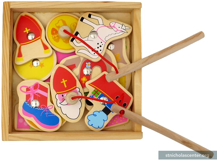 Cube tells the story of St. Nicholas, through six story panels and six illustrations. The cube opens and turns to follow the story.