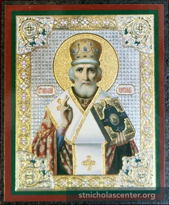 Many different St Nicholas printed icons mounted on wood or laminated prints, multiple sizesPurchase from Orthodox Byzantine Icons