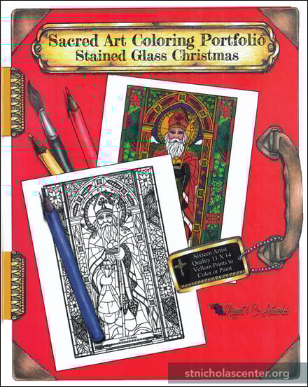 Teen and adult coloring portfolio with 16 heavy artist quality vellum prints, color guide and helpful tips, too. In addition to St. Nicholas, Christ Child, Our Lady of Snows & of Guadalupe, nativity scenes, Advent wreath, angels, and Immaculate Conception.Purchase from Nippert & Co Artworks